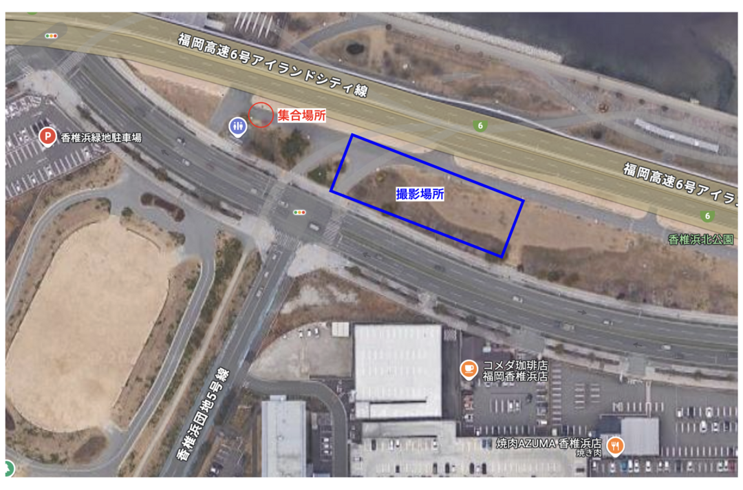 【ラブグラフ撮影会】香椎浜北公園(福岡県・福岡市)の集合場所と撮影場所 更新 集合場所・撮影場所の情報 <集合場所> 下記画像公園内トイレ周辺の赤丸にて集合をお願いいたします。 <撮影場所> 公園内、下記画像青枠の範囲周辺にて撮影をいたします。 <アクセス方法> ◆車でお越しの場合 下記画像の赤点「香椎浜緑地駐車場」 駐車料金:入庫から1時間まで100円 以降1時間毎100円 最大500円 住所:福岡県福岡市東区香椎浜ふ頭1丁目3 集合・撮影場所 駐車場 公園詳細